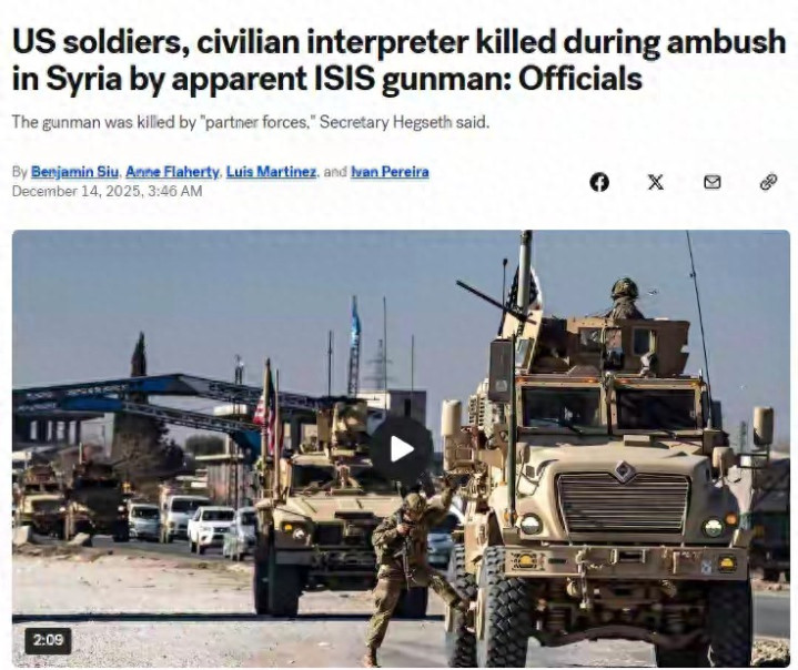 当地时间12月13日,在霍姆斯省历史名城巴尔米拉附近,一场由叙利亚安全部队与美国军方共同执行的巡逻任务,演变成了一场血腥的“内部袭击”。